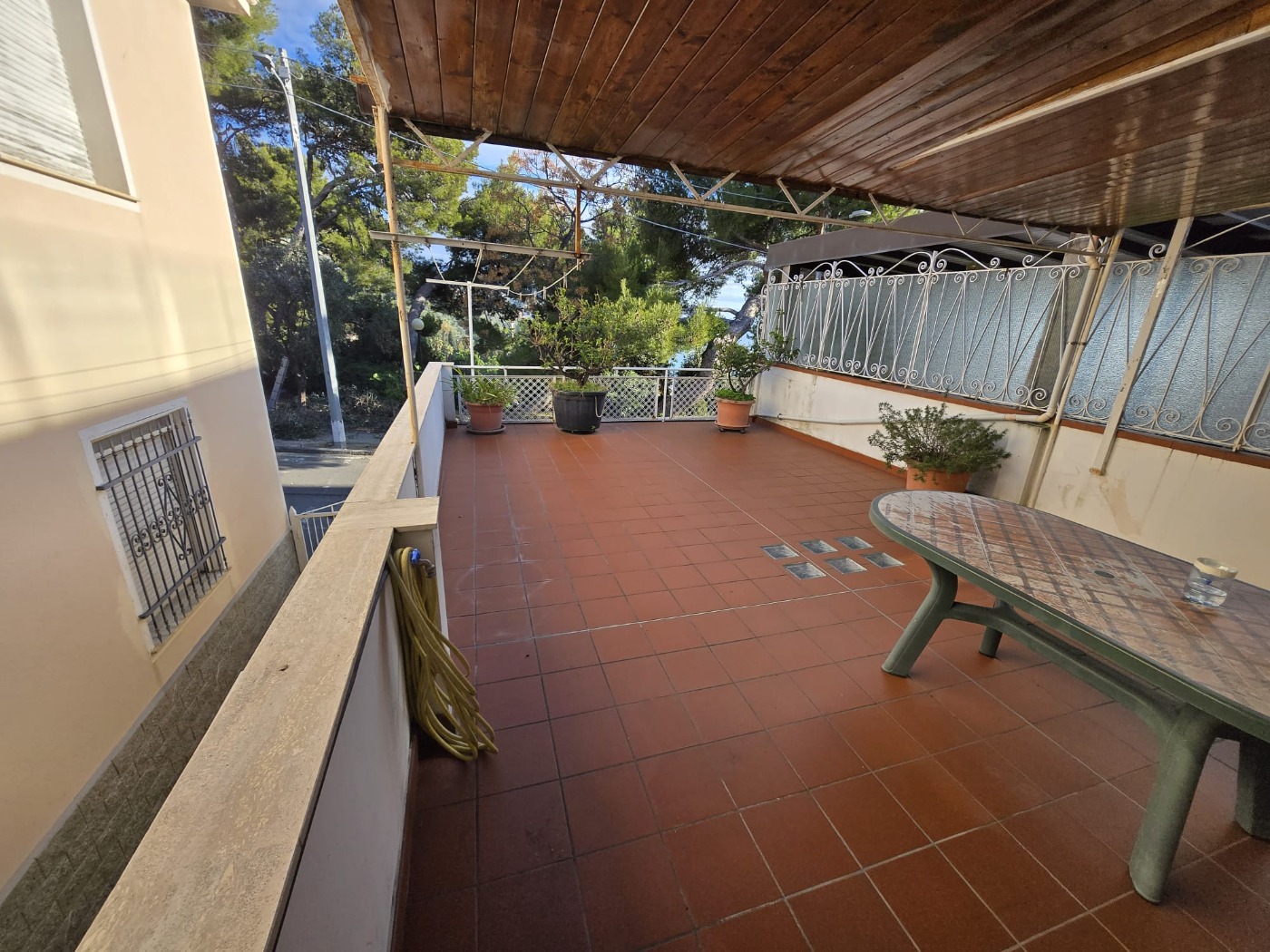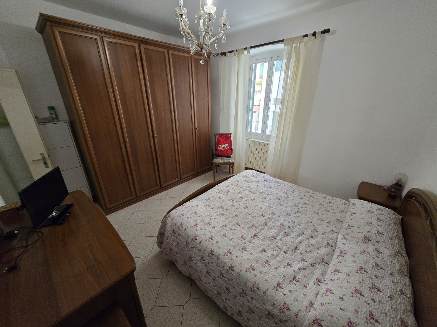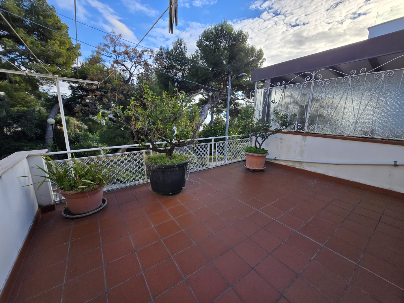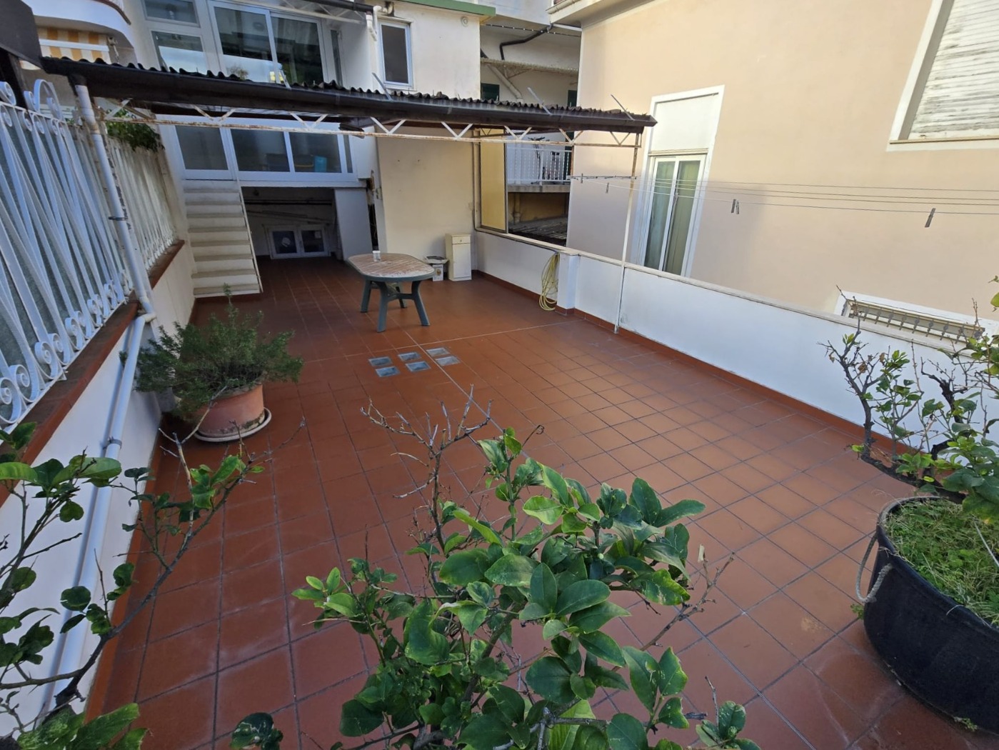 A Bussana, in via Milano, con doppio ingresso, grande appartamento con grande terrazza. L’appartamento si trova a Bussana, frazione di Sanremo molto ambita come meta sia turistica, per la sua vicinanza al mare e borgo affascinante, sia dai residenti in quanto è completa di tutti i servizi. L’appartamento è accessibile sia da Via Milano, dove si entra facendo una corta rampa di scale, che da via Circonvallazione, accedendo dal vano cantine; l’appartamento si compone da ingresso su ampia zona giorno, luminosa e dotata di balcone con lavanderia; si prosegue nella zona cucina abitabile dal quale si accede ad una veranda che porta sull’ampia terrazza, soleggiata e con vista sul viale ed il mare, anche qui troviamo un angolo lavanderia; troviamo poi due grandi e ampie camere da letto matrimoniali ben finestrate, ed il bagno il quale ha accesso dalla veranda della cucina. Al piano seminterrato, troviamo anche un’ampia cantina soppalcata di 33mq appena ripavimentata con impianti da ultimare, ottima come semplice magazzino o come ampia taverna. Le finestre sono tutte in doppio vetro/PVC ed il riscaldamento è autonomo a radiatori. L’ultima ristrutturazione risale agli anni 2000