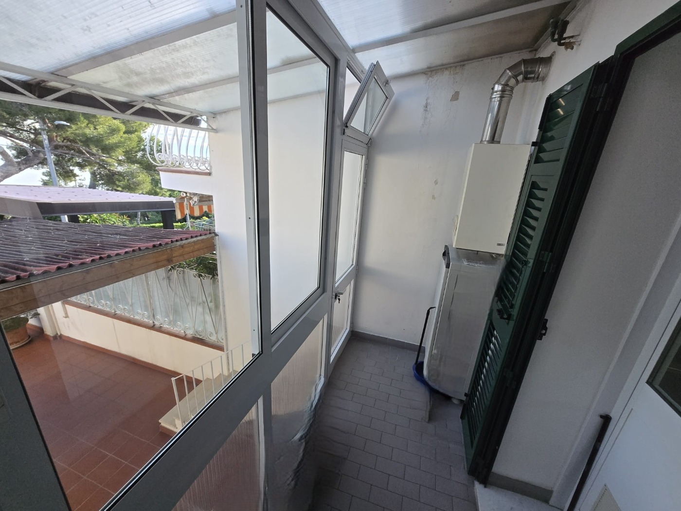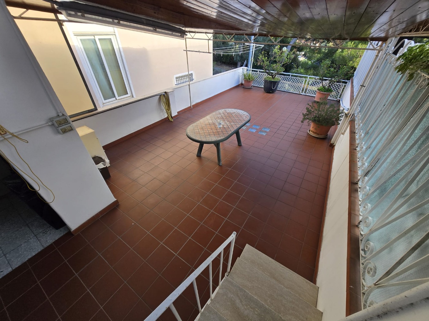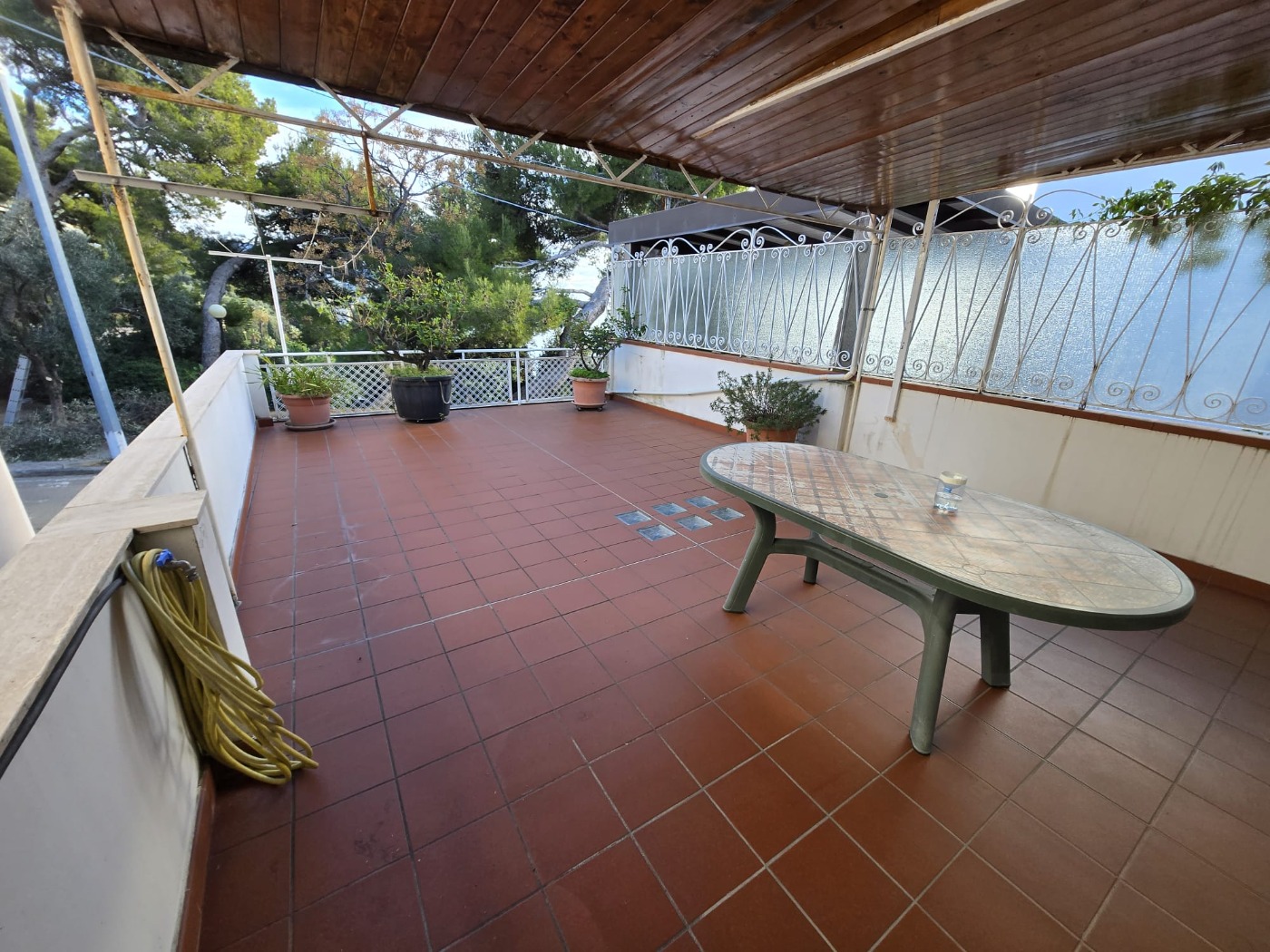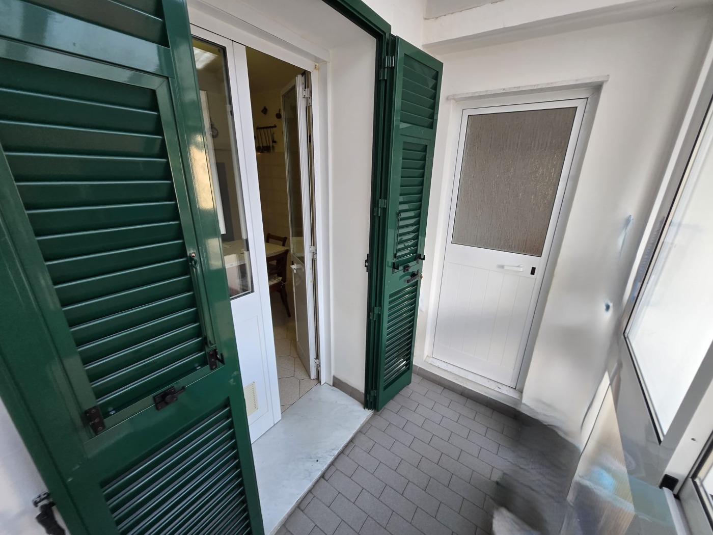 A Bussana, in via Milano, con doppio ingresso, grande appartamento con grande terrazza. L’appartamento si trova a Bussana, frazione di Sanremo molto ambita come meta sia turistica, per la sua vicinanza al mare e borgo affascinante, sia dai residenti in quanto è completa di tutti i servizi. L’appartamento è accessibile sia da Via Milano, dove si entra facendo una corta rampa di scale, che da via Circonvallazione, accedendo dal vano cantine; l’appartamento si compone da ingresso su ampia zona giorno, luminosa e dotata di balcone con lavanderia; si prosegue nella zona cucina abitabile dal quale si accede ad una veranda che porta sull’ampia terrazza, soleggiata e con vista sul viale ed il mare, anche qui troviamo un angolo lavanderia; troviamo poi due grandi e ampie camere da letto matrimoniali ben finestrate, ed il bagno il quale ha accesso dalla veranda della cucina. Al piano seminterrato, troviamo anche un’ampia cantina soppalcata di 33mq appena ripavimentata con impianti da ultimare, ottima come semplice magazzino o come ampia taverna. Le finestre sono tutte in doppio vetro/PVC ed il riscaldamento è autonomo a radiatori. L’ultima ristrutturazione risale agli anni 2000