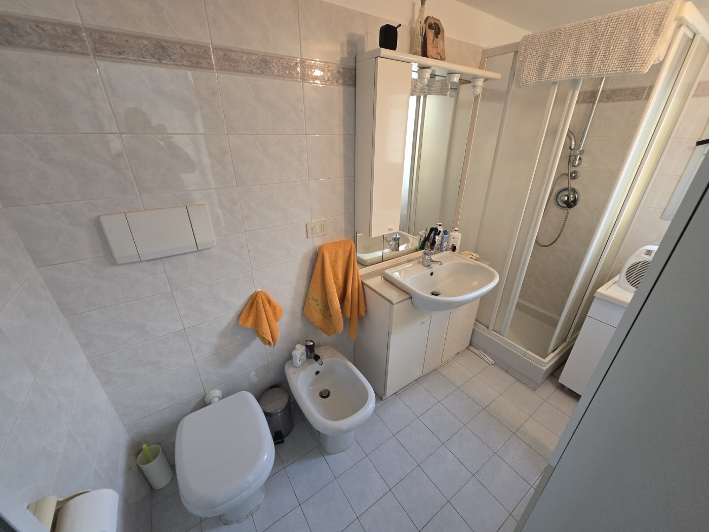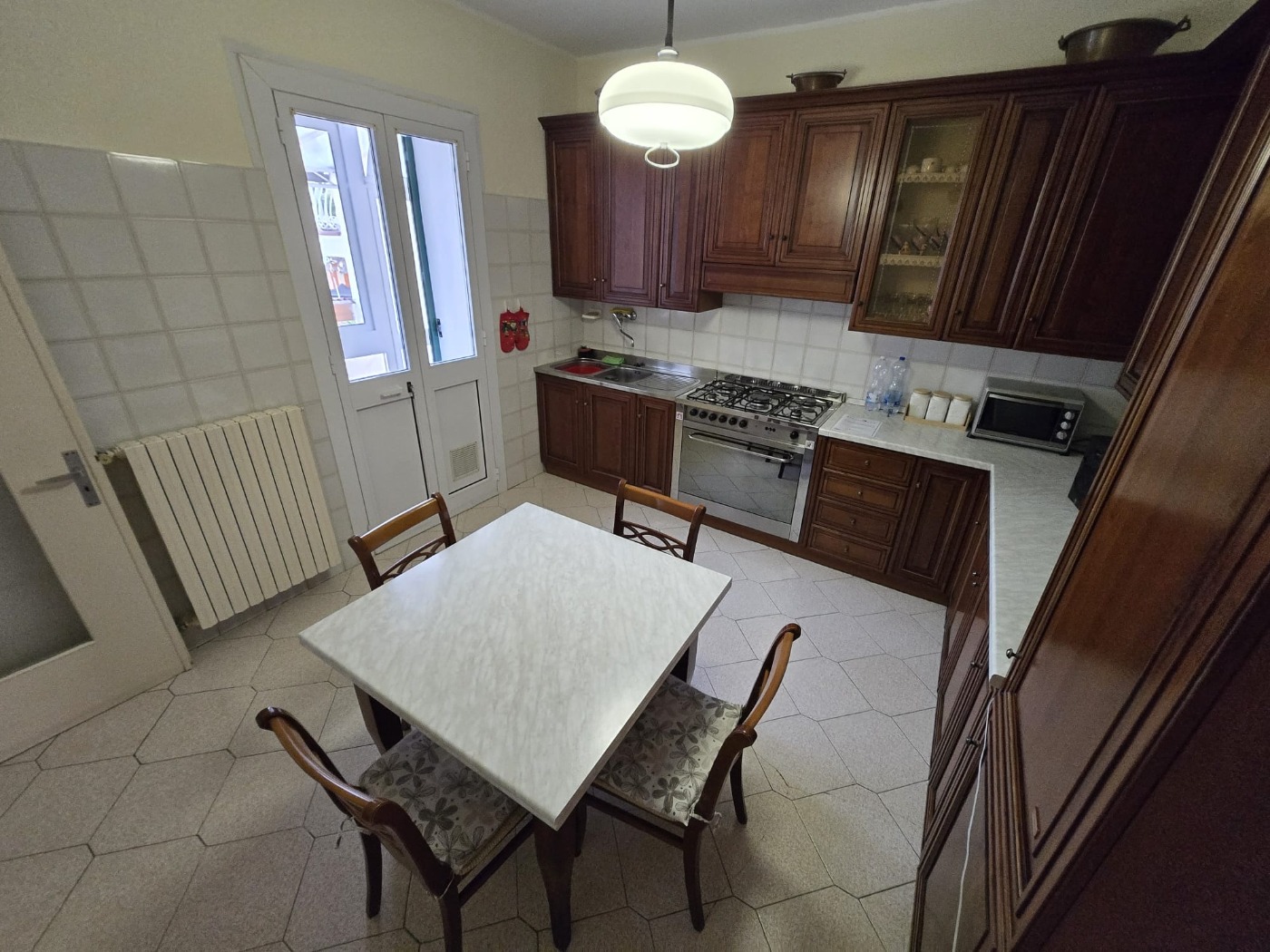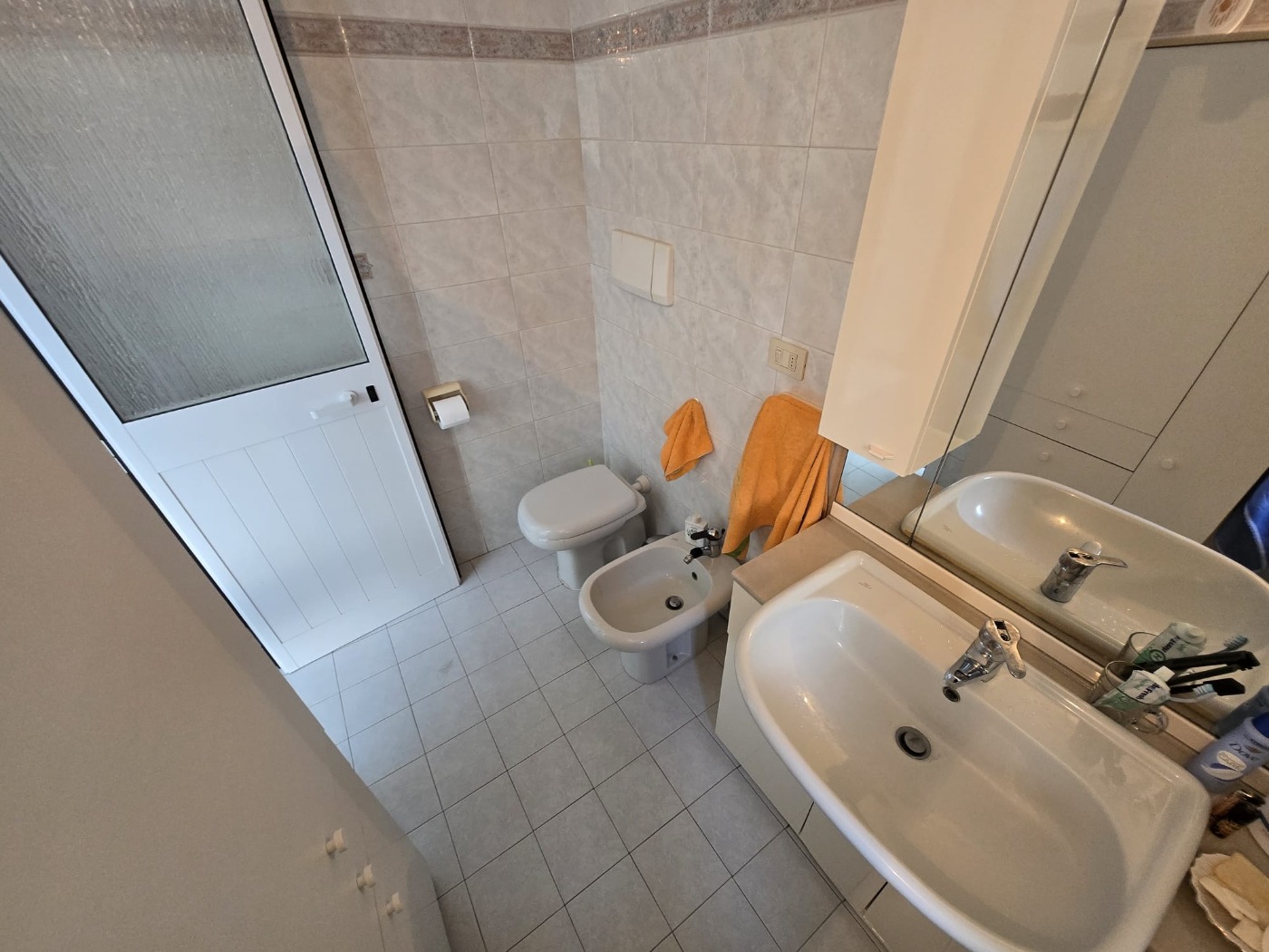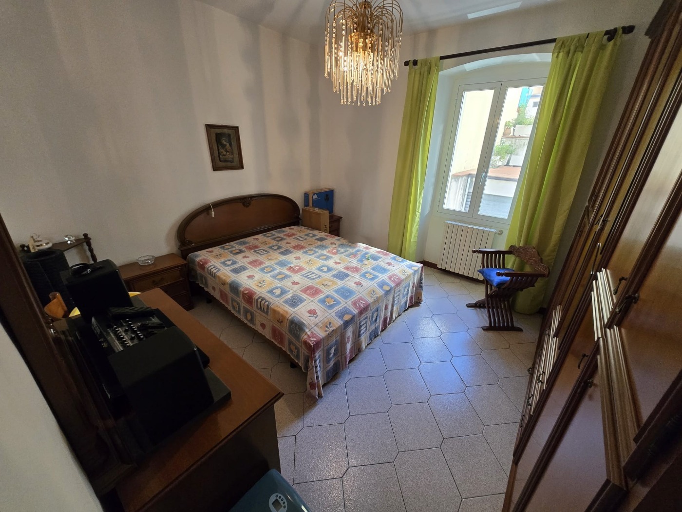 A Bussana, in via Milano, con doppio ingresso, grande appartamento con grande terrazza. L’appartamento si trova a Bussana, frazione di Sanremo molto ambita come meta sia turistica, per la sua vicinanza al mare e borgo affascinante, sia dai residenti in quanto è completa di tutti i servizi. L’appartamento è accessibile sia da Via Milano, dove si entra facendo una corta rampa di scale, che da via Circonvallazione, accedendo dal vano cantine; l’appartamento si compone da ingresso su ampia zona giorno, luminosa e dotata di balcone con lavanderia; si prosegue nella zona cucina abitabile dal quale si accede ad una veranda che porta sull’ampia terrazza, soleggiata e con vista sul viale ed il mare, anche qui troviamo un angolo lavanderia; troviamo poi due grandi e ampie camere da letto matrimoniali ben finestrate, ed il bagno il quale ha accesso dalla veranda della cucina. Al piano seminterrato, troviamo anche un’ampia cantina soppalcata di 33mq appena ripavimentata con impianti da ultimare, ottima come semplice magazzino o come ampia taverna. Le finestre sono tutte in doppio vetro/PVC ed il riscaldamento è autonomo a radiatori. L’ultima ristrutturazione risale agli anni 2000