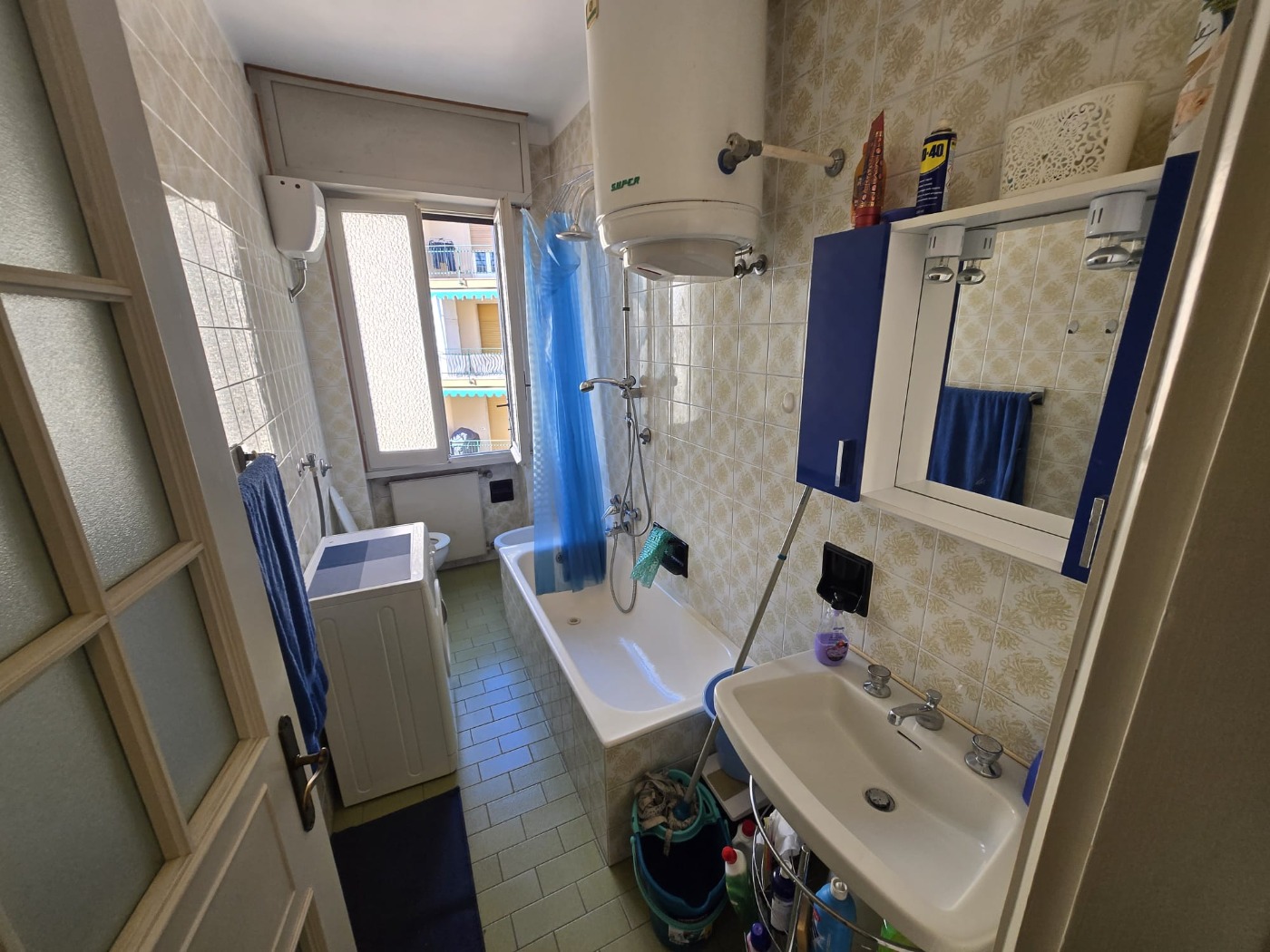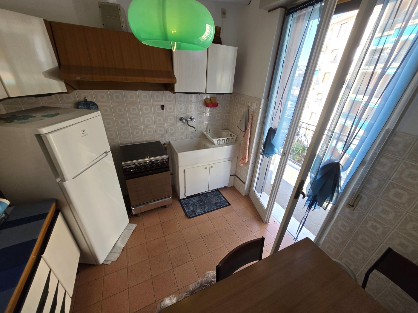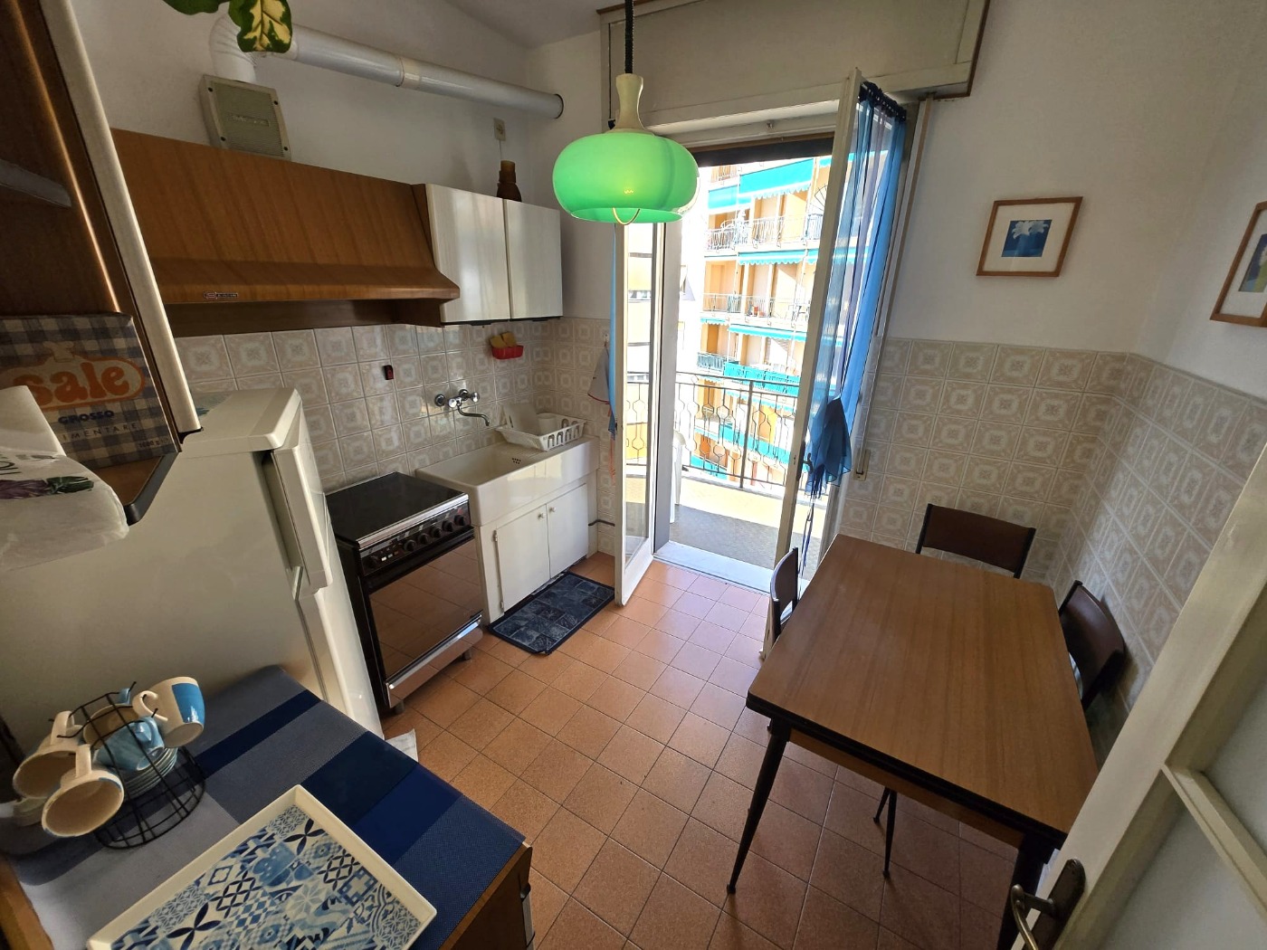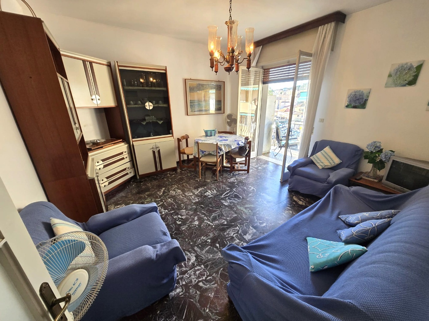 Ad Arma di Taggia, in Via Papa Giovanni XXIII, appartamento al piano quarto con cantina, ascensore e angolo di vista mare. L’appartamento si trova sotto l’Aurelia, comodo a tutti i servizi, al mare ed al parcheggio gratuito; è posto al quarto piano ed è composto da ingresso, tramite porta blindata, su disimpegno, grande e ampia zona giorno con uscita su grande balcone con angolo di vista mare, cucina abitabile con uscita sul medesimo balcone, grande camera da letto matrimoniale e bagno. L’esposizione è sud/Ovest, quindi l’appartamento risulta luminoso e ben soleggiato sin dalle prime luci del pomeriggio. L’immobile risulta conservato e funzionante, ma qualora si volesse effettuare una ristrutturazione, si potrebbe spostare la cucina in sala creando così un’accogliente zona giorno con angolo cottura, ed una nuova stanza da adibire a cameretta. La palazzina negli anni è stata totalmente restaurata, con nuove coperture oblique e facciata rifatta, ascensore a norma e manutenzione generale, non sono infatti previste spese straordinarie. Il riscaldamento è prodotto con termosifoni a valvole termostatiche con caldaia centralizzata. Come posto auto, è incluso un parcheggio per appartamento tramite tagliandino, non assegnato