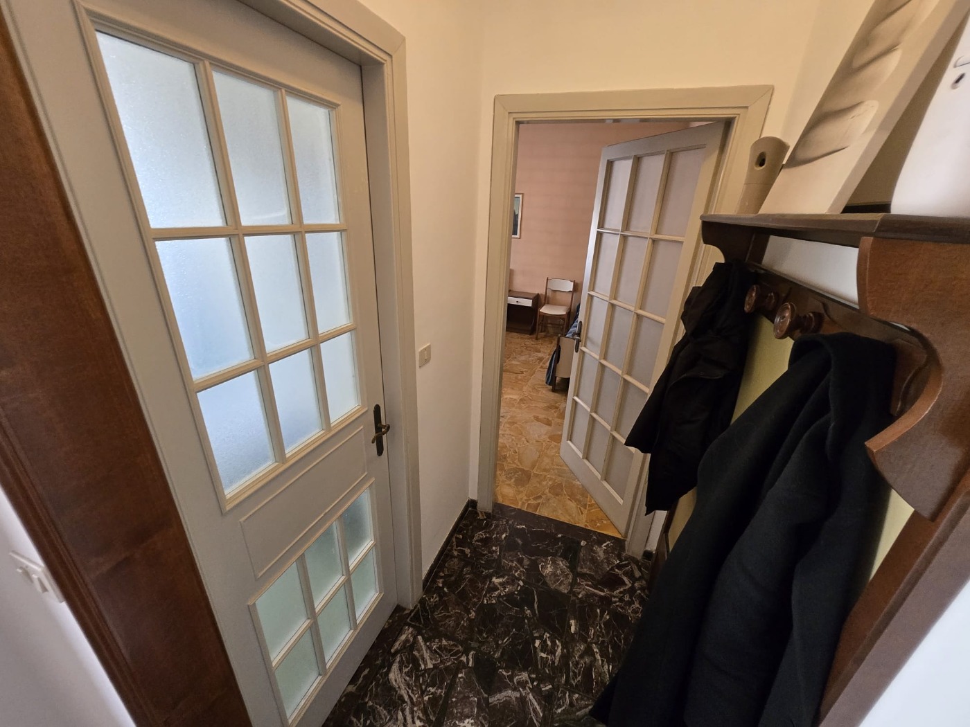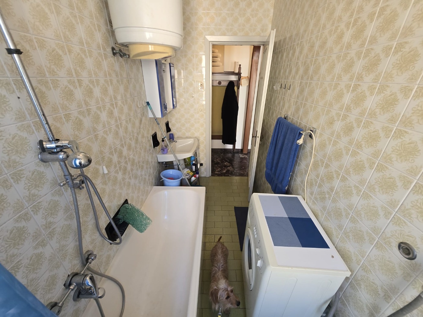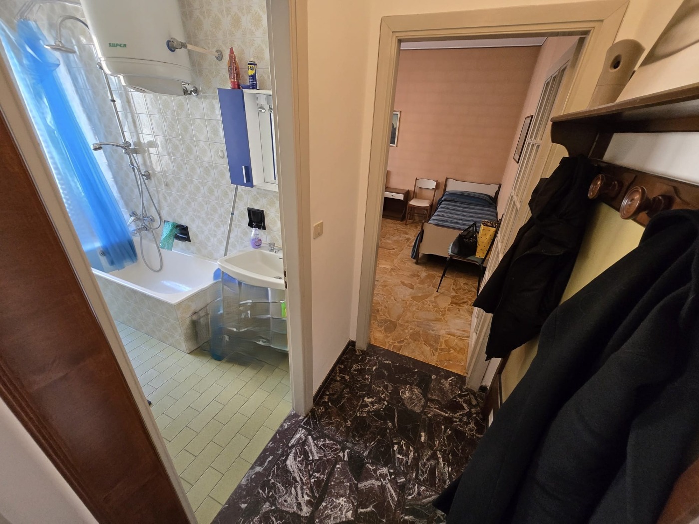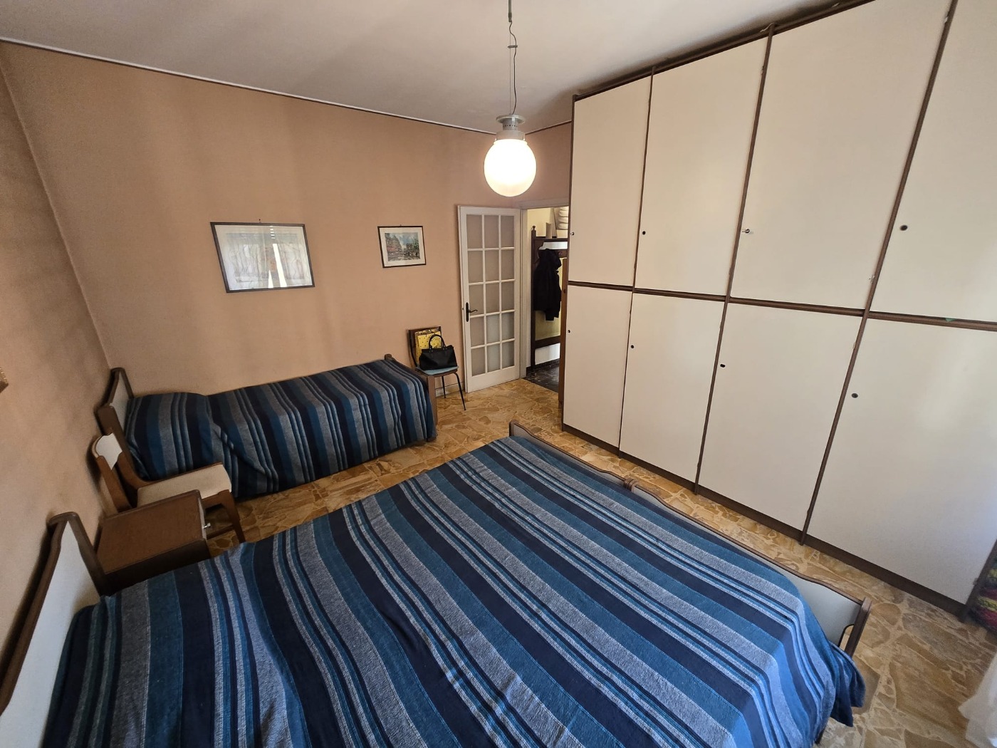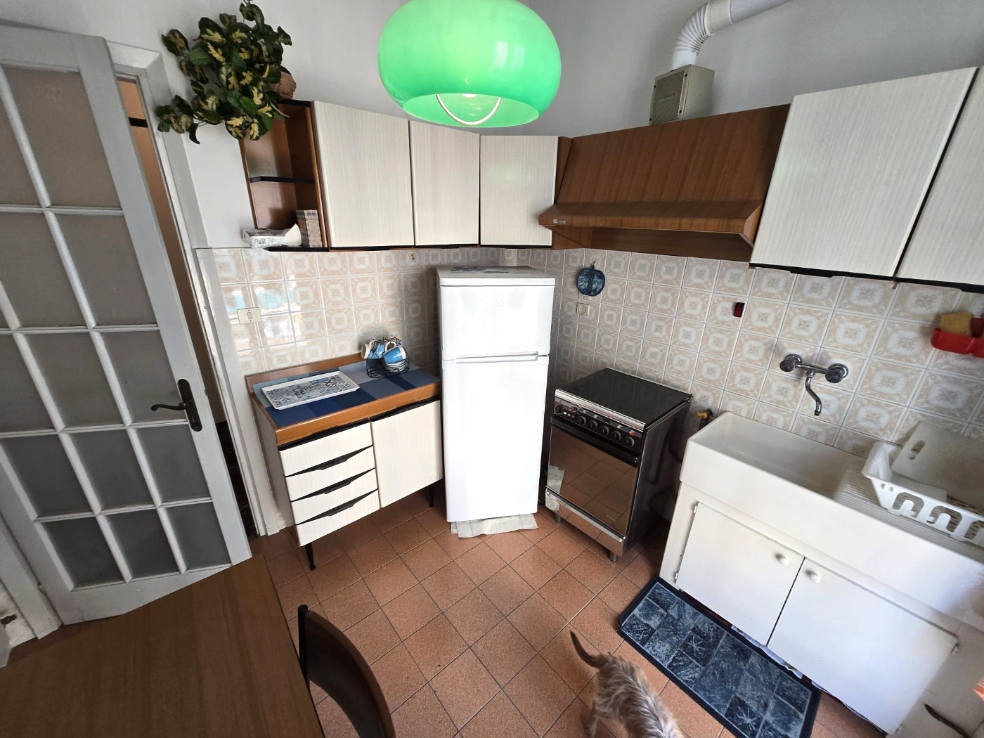 Ad Arma di Taggia, in Via Papa Giovanni XXIII, appartamento al piano quarto con cantina, ascensore e angolo di vista mare. L’appartamento si trova sotto l’Aurelia, comodo a tutti i servizi, al mare ed al parcheggio gratuito; è posto al quarto piano ed è composto da ingresso, tramite porta blindata, su disimpegno, grande e ampia zona giorno con uscita su grande balcone con angolo di vista mare, cucina abitabile con uscita sul medesimo balcone, grande camera da letto matrimoniale e bagno. L’esposizione è sud/Ovest, quindi l’appartamento risulta luminoso e ben soleggiato sin dalle prime luci del pomeriggio. L’immobile risulta conservato e funzionante, ma qualora si volesse effettuare una ristrutturazione, si potrebbe spostare la cucina in sala creando così un’accogliente zona giorno con angolo cottura, ed una nuova stanza da adibire a cameretta. La palazzina negli anni è stata totalmente restaurata, con nuove coperture oblique e facciata rifatta, ascensore a norma e manutenzione generale, non sono infatti previste spese straordinarie. Il riscaldamento è prodotto con termosifoni a valvole termostatiche con caldaia centralizzata. Come posto auto, è incluso un parcheggio per appartamento tramite tagliandino, non assegnato